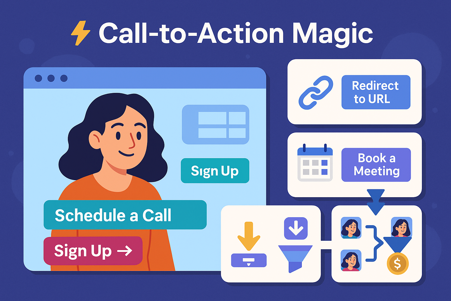 ⚡ Built-in CTAs: book calls, collect emails, downloads, redirects, and more