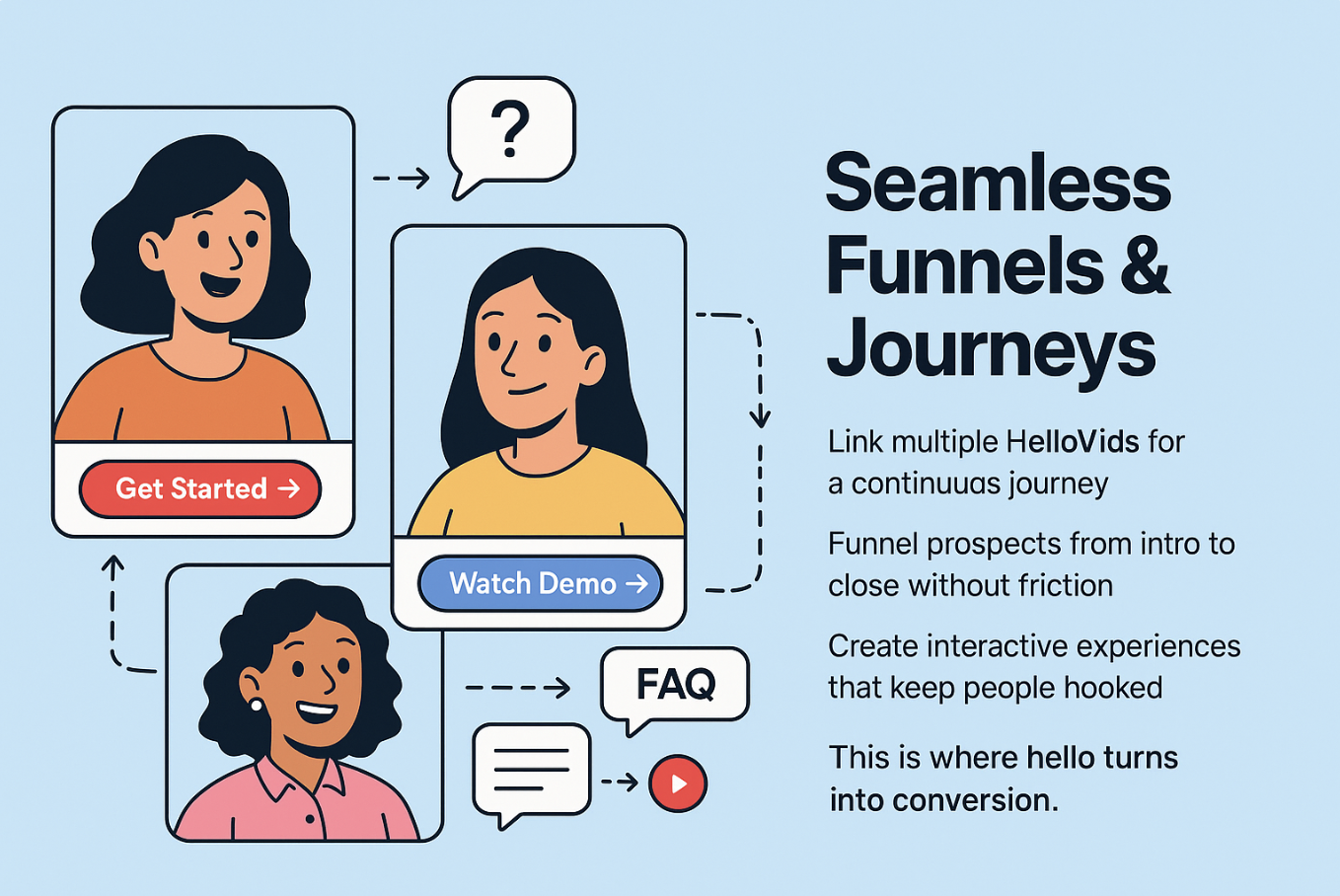 Connect HelloVids together to guide visitors step by step. Think onboarding, demos, FAQs—smooth and simple.